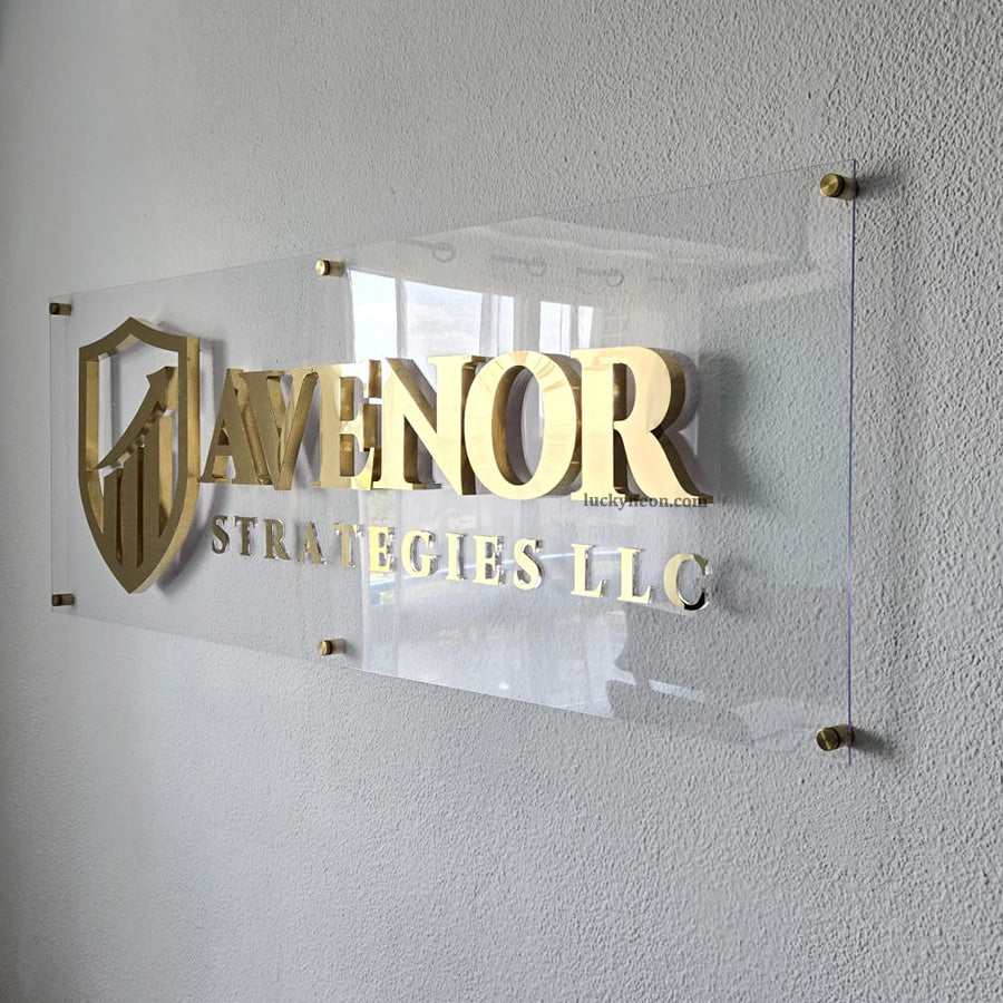 Create a striking centerpiece for your space with a custom 3D letters sign with backboard, adding elegance and depth to your commercial walls. This standoff-mounted wall sign adds a subtle floating effect, bringing depth and visual interest to shops, showrooms, co-working spaces, cafés, offices, and reception areas.