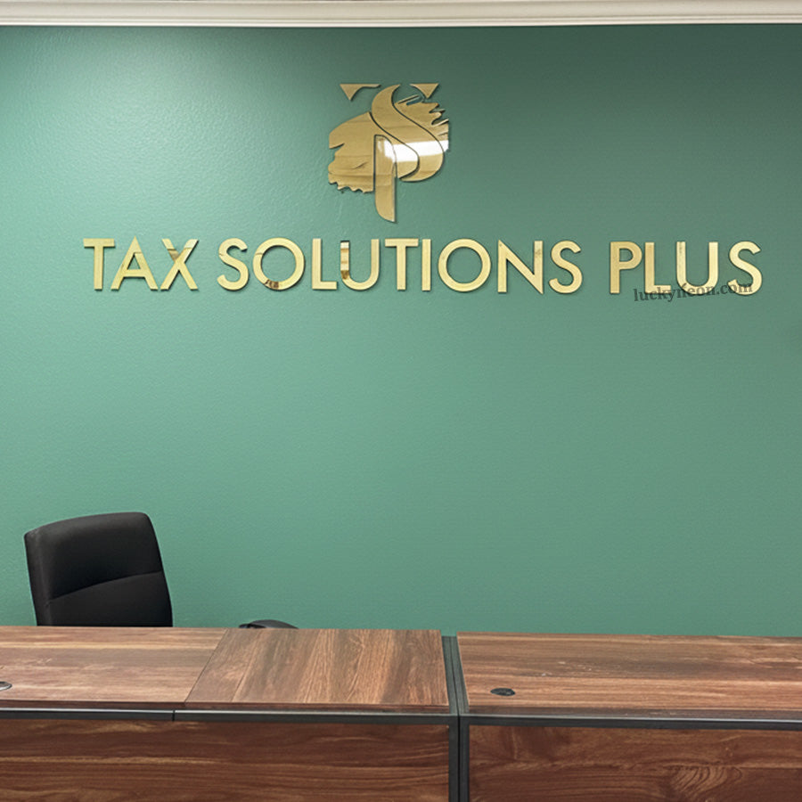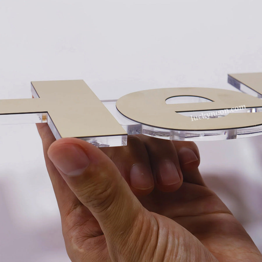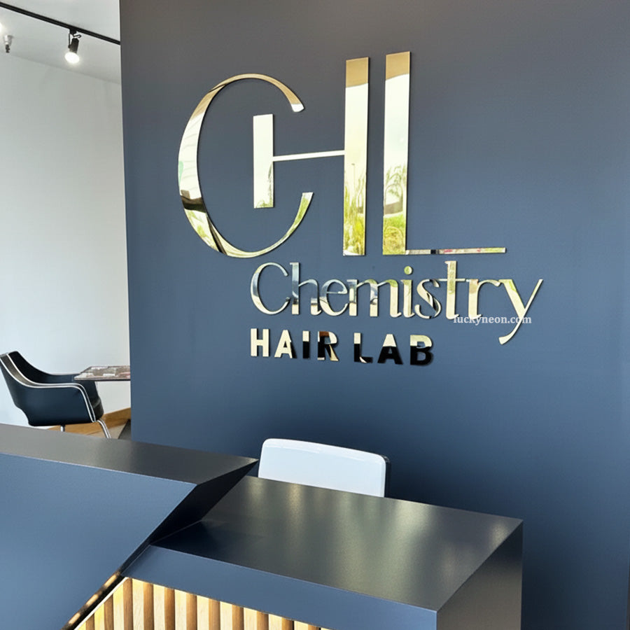 LuckyNeon, a professional sign manufacturer, produces fully customized 3D wall logo signs with acrylic letters in metal finishes, designed to enhance your business space with a contemporary, premium look.