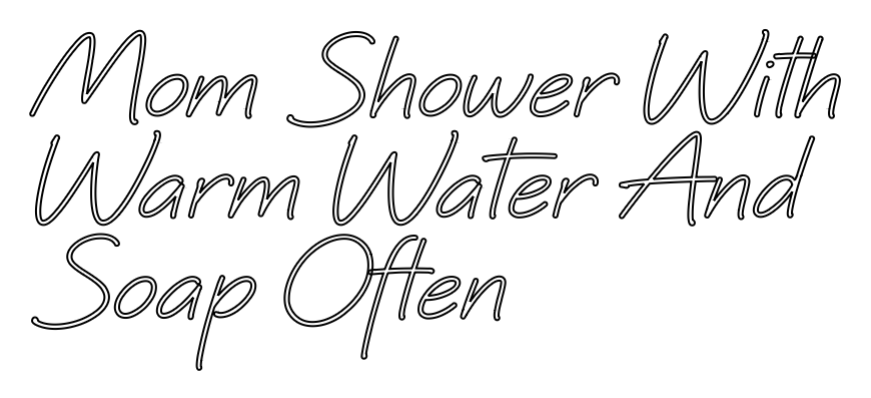 Text: Mom Shower With Warm Water And Soap Often