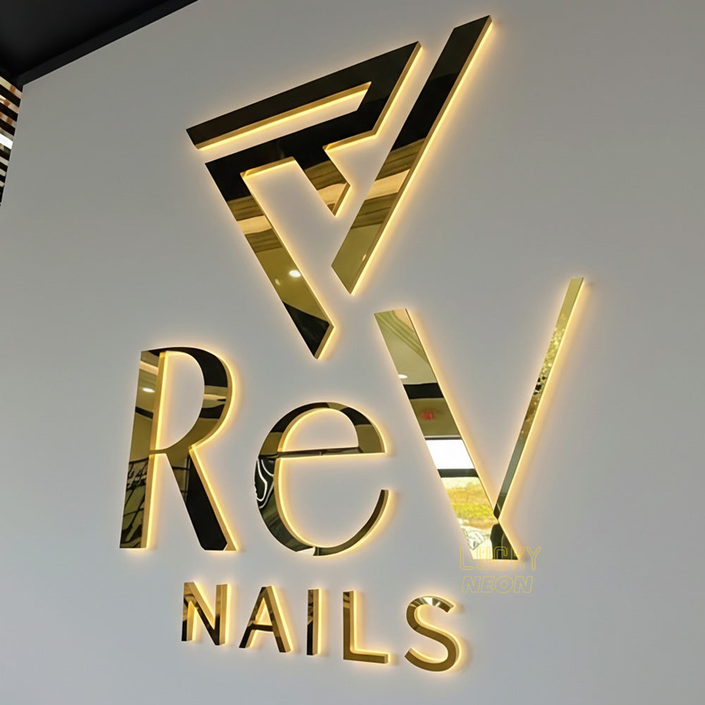 Personalized Custom 3D Metal Backlit Signs – Stainless Steel Business Signs for Offices, Storefronts, Receptions, and Salons