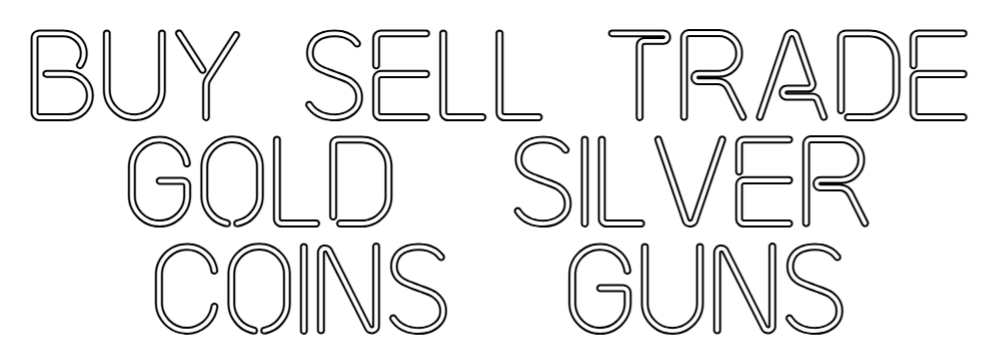 Text: Buy Sell Trade Gold Silver Coins Guns